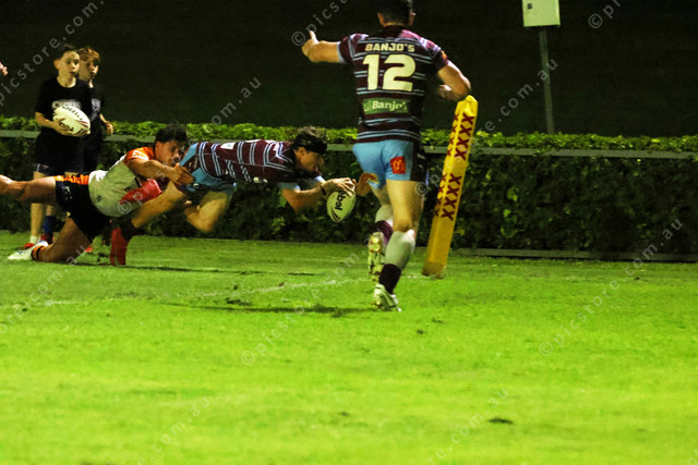 Connor Rothery dives over in the corner.