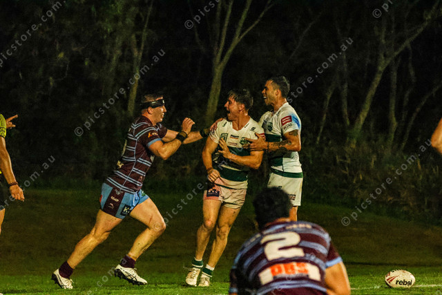 Ipswich’s Oliver Pascoe gets under the skin of CQ’s Tyler Szepanowski after scoring the final try.