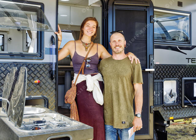 Caylee Rankin and David Worsey looking out for a caravan (Ivan Kemp) 521171_02