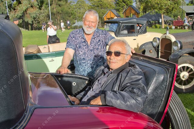 Pat Virgara watches Ron Maiolo try out the dicky seat in his 1930 Chrysler 77 Coupe. 468789_14