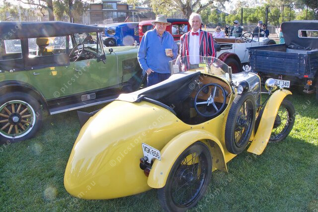 Ian Warnes and Ian Mader admiring the 1929 Austin 7 Meteor Sports. 468789_23