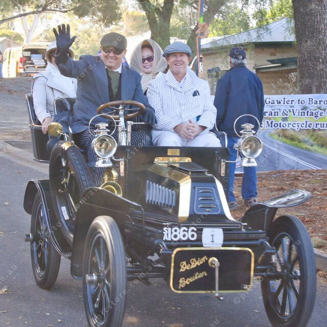 Leading off the cars as they head for Lyndoch for morning tea is Geoff Mitton in the oldest car at the event the 1904 De Dion Bouton V Tonnea. 468789_25