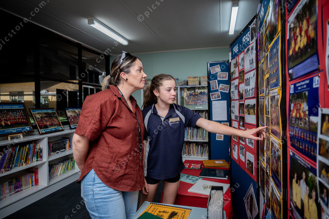 Former student Megan Sires and school captain Violet Purcell. Picture: Ben Gross