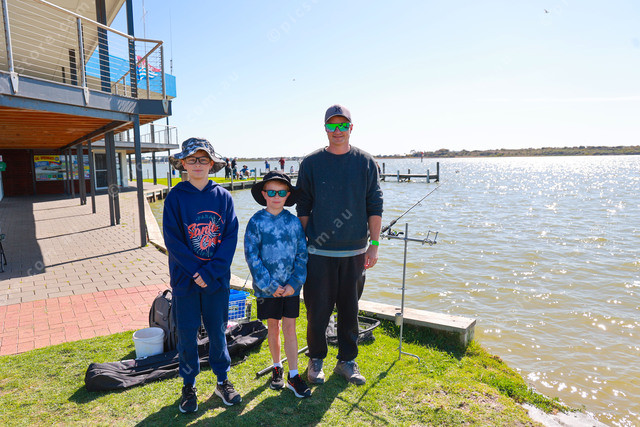 Jett, Diezel, and Craig Paech at Goolwa’s inaugural Carp-a-thon. (Jesse Ehlers 508822_01)