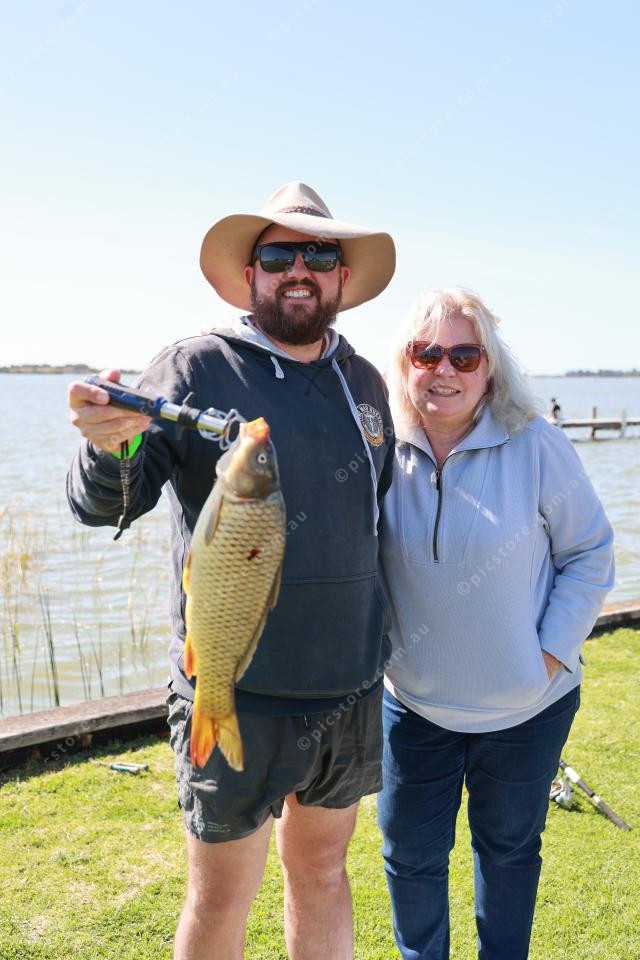 Sponsors Sam and Kerry Bissaker of In Time Kitchens with their catch. (Jesse Ehlers 508822_05)