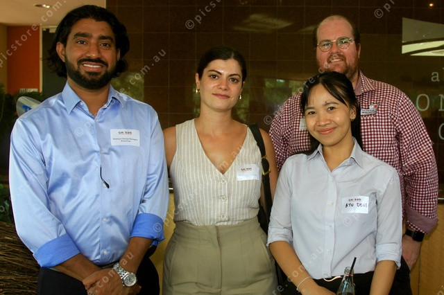 CONNECTING: Anasmon Kulagar, Patricia Vaquero, Ayu Devi and Jarred Bird connecting at the TCA networking event. (PIC: Tourism Central Australia)