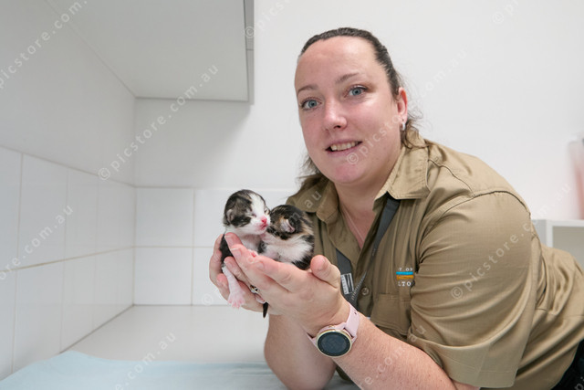 Ashlie Price (Animal attendant) holding 2 day old kitten born in the pound_Ljubica Vrankovic_459032_07