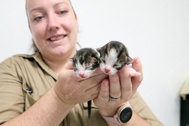 Ashlie Price (Animal attendant) holding 2 day old kitten born in the pound_Ljubica Vrankovic_459032_08