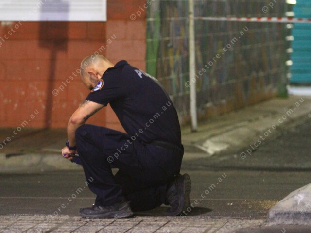 CLUE: A forensic investigator looks for clues following a stabbing in the Alice Springs CBD. (PIC: PHIL WILLIAMS 478464_02)