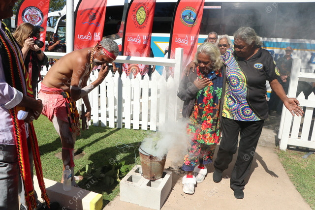 To complete their welcome to Cherbourg, the visiting dignitaries took part in a smoking ceremony. 476504_12