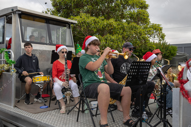 Port Lincoln City Band members playing on an oyster boat, from left, were Ryan Windsor, Ann Staunton, Lucas Dixon and (back) Bill Kannussaar. (526113_13)