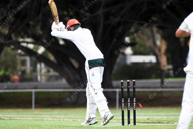 Joshua Lownds leaves this Trishane De Silva delivery and is bowled for a duck