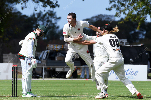 Joshua Grogan gets Ben Parrott LBW for a golden duck 466754_50
