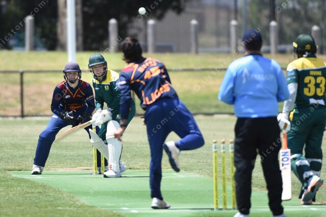 Peter Quinn (Officer) faces a ball from Jackson Myers (Pakenham). 528970_02