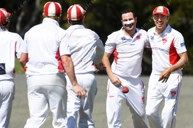 Lucas Carroll is stoked after nabbing the crucial wicket Dominic Paynter after hitting it straight to Riley Worsteling at cover shortly after tea 374098_16
