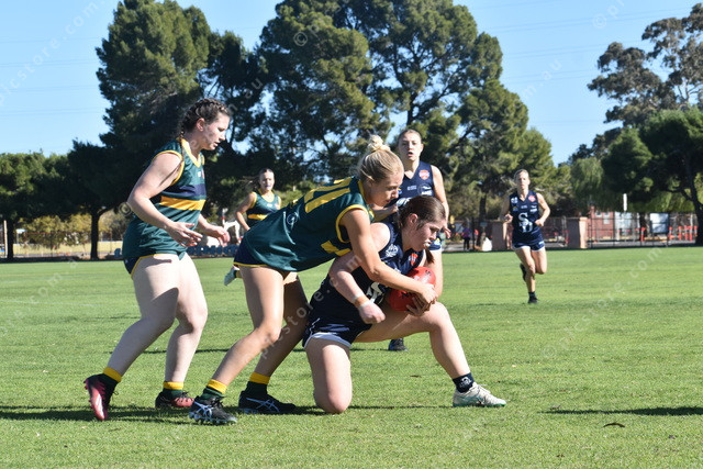 Central’s Jorja Yorath ties up Southern Districts’ Caitlin Hill. (489824)