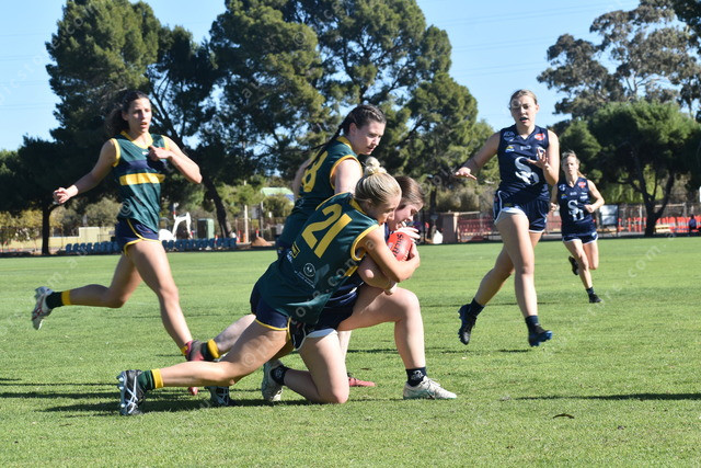 Central’s Jorja Yorath ties up Southern Districts’ Caitlin Hill. (489824)