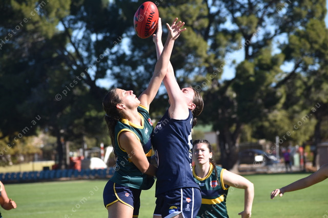Southern Districts’ Olivia Walker-Obushak wins the tap against Central’s Ilinca Ariana Barbu. (489824)