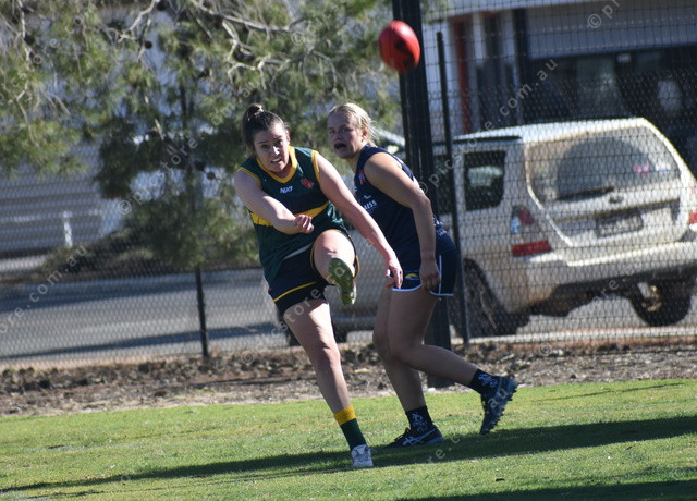 Central’s Renai Richardson clears the ball out of defence as Southern Districts’ Jodie Hunt looks on. (489824)