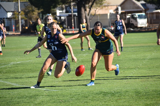 Southern Districts’ Lily Jenke and Central’s Scarlett Wilkin go after the loose ball. (489824)