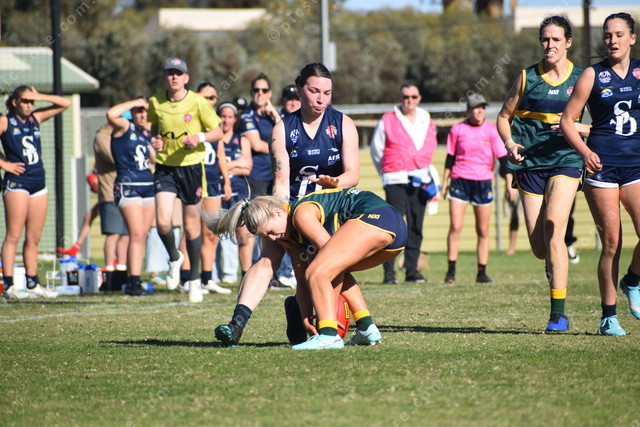 Southern Districts’ Olivia Walker-Obushak about to tackle Central’s Summar Bird-Fidge, who attempts to grab the ground ball. (489824)