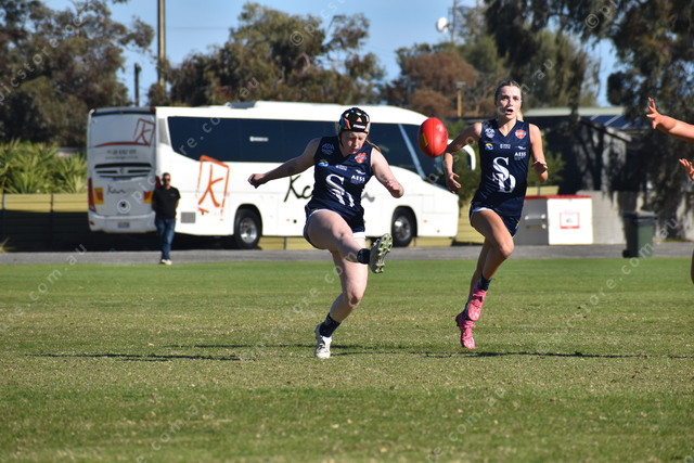 Southern Districts’ Angelique Dean fires the ball forward with a kick. (489824)