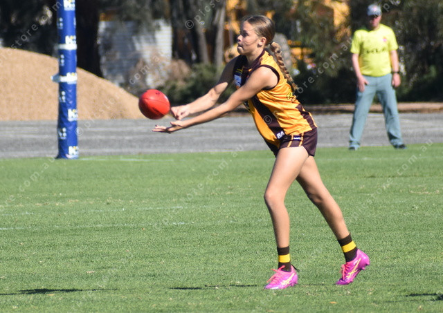 Eyre Peninsula’s Kaianne Colbung-Ware fires off a handball. (489827)