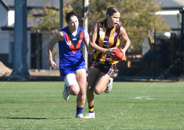 Eyre Peninsula’s Kailee Colbung-Ware powers through the midfield. (489827)