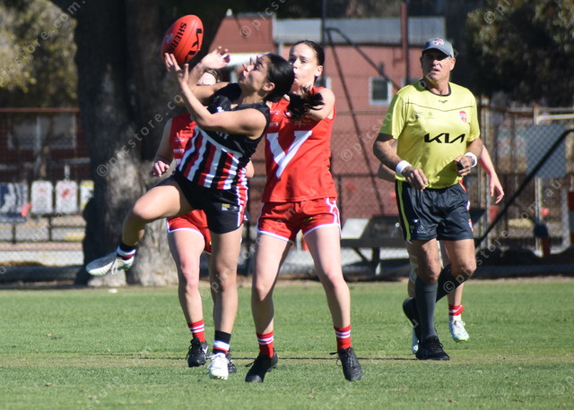 South East’s Hinemoa Biddle-Maitland and Northern’s Matilda Dixon contest the ball. (489831)