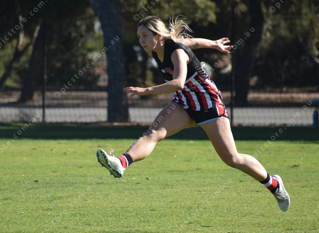 South East’s Tess Andrews boots the ball clear out of defence. (489831)