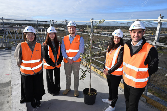 Cedar Woods are major sponsors of the Wyndham Business Awards. Pic of Karen Huong, Sophie Zhou, Laurence Hutt, Anna Notari and James Bovell, Vic State Manager. Photo by Damjan Janevski. 476389_02