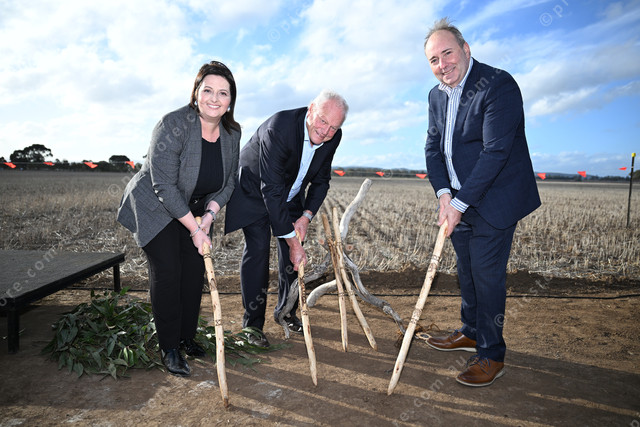 Ground breaking for memorial park . Pic of Deputy Mayor Cr Lara Carli with Greater Metropolitan Cemeteries Trust’s chai Michael Doery and CEO Andrew Eriksen. Photo by Damjan Janevski. 470574_03