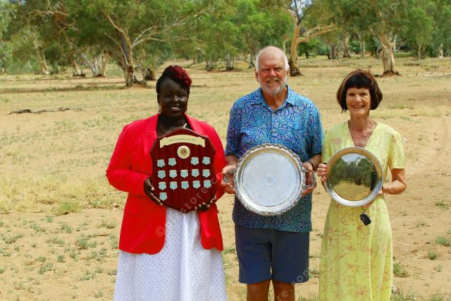 CELEBRATED: Centralians of the Year, Apajok Biar, Neil Ross and Virginia Lowe who represented Rotary for the Bangtail Muster as Community Event. PIC: PHIL WILLIAMS 385622_04