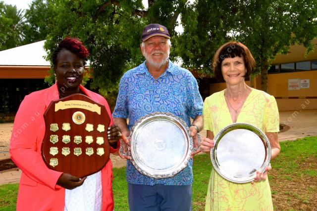 COMMUNITY: Centralians of the Year, Apajok Biar, Neil Ross and Virginia Lowe who represented Rotary for the Bangtail Muster as Community Event. PIC: PHIL WILLIAMS 385622_05