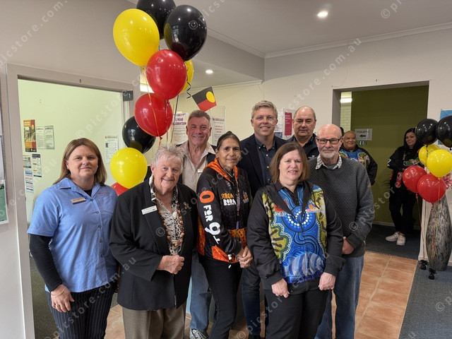 Becky Bysouth, Susan Nichols, Michael Weeding, Summer Hunt, Daniel Linklater, Jenny Botha, Ken Ross and Peter Crisp celebrate CHAC’s 5 years of servicing community. Picture: Lochlainn Heley