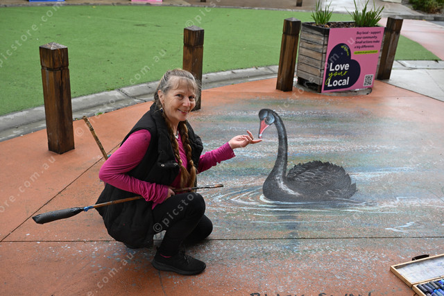 Pic of artist Ulla Taylor with her 3D artwork. (Damjan Janevski). 509582_04