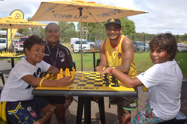 Matthew, Ronkeyah, Rahcine and Cain try out the chess. 469196_01
