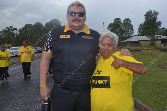 R U OK? Stronger Together Manager Steve Satour with Anita Langton who marched in honour of her late son. 469196_19
