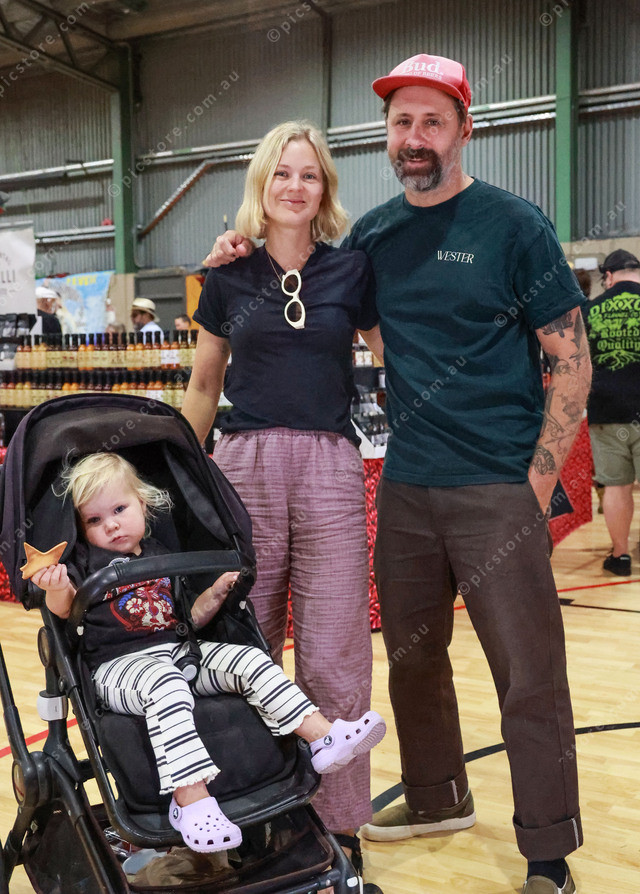 Willunga residents Birdie, Charlotte, and Pete were among the crowds at the Willunga Chilli Fest on Sunday, February 24. (Jesse Ehlers: 461483_17)