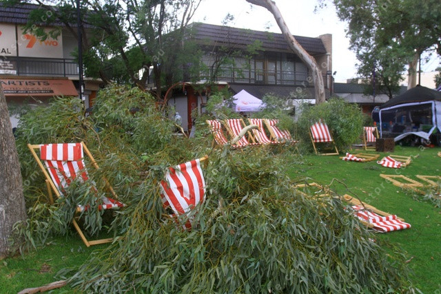 CLOSE CALL: No one was sitting in these chairs when when branches fell on them as a wind storm tore through Alice Springs during the Chreistmas Street Party. (PIC: PHIL WILLIAMS 524503_05)
