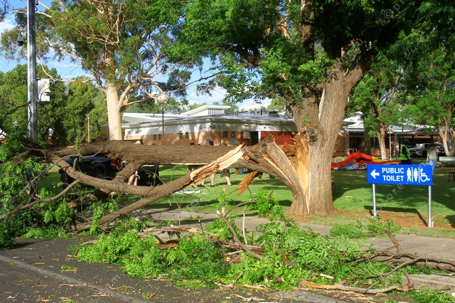 DOWNED: A large tree in the heart of Alice Springs which was split after a violent wind storm blew through the town. (PIC: PHIL WILLIAMS 524503_08)
