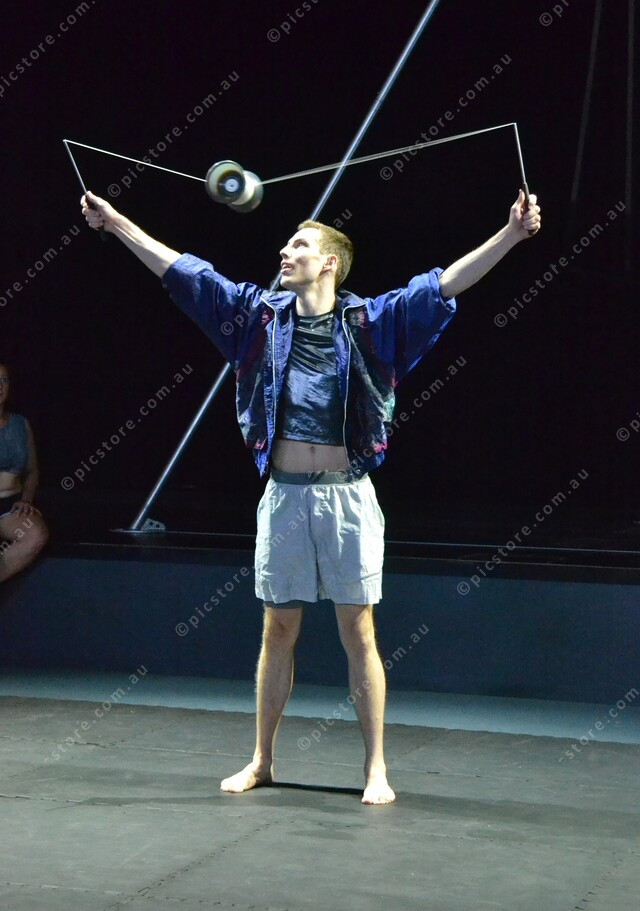 Acrobat Jake Kenner shows off his skills to the students delight. 459109_08