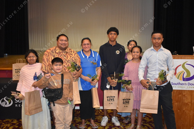 Tereapii, Takavao and Miracle Tevaseu, Ngavaine, Tuakana, Teparinga and Tekauariki Oa’Ariki, and Rouruina Porima celebrated becoming citizens as a family. (Lucy Waldron: 503623)