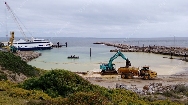 Works underway at Cape Jervis’ boat ramp and port in October 2024. (Stan Gorton)