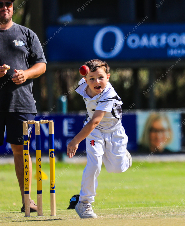 Charlie Hynes looks to hit the stumps with this delivery. (Jesse Ehlers 533493_08)