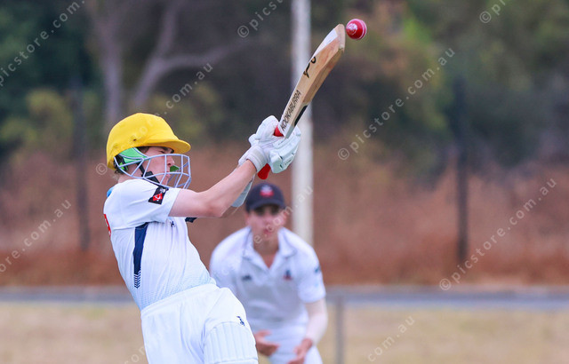 McLaren Districts Max Tressider swings his bat at a bouncing delivery in his Junior Colts match against Port Elliot. (Jesse Ehlers 531896_03)