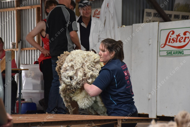 Alicia Redding about to throw her fleece in the senior wool handling. (511568)