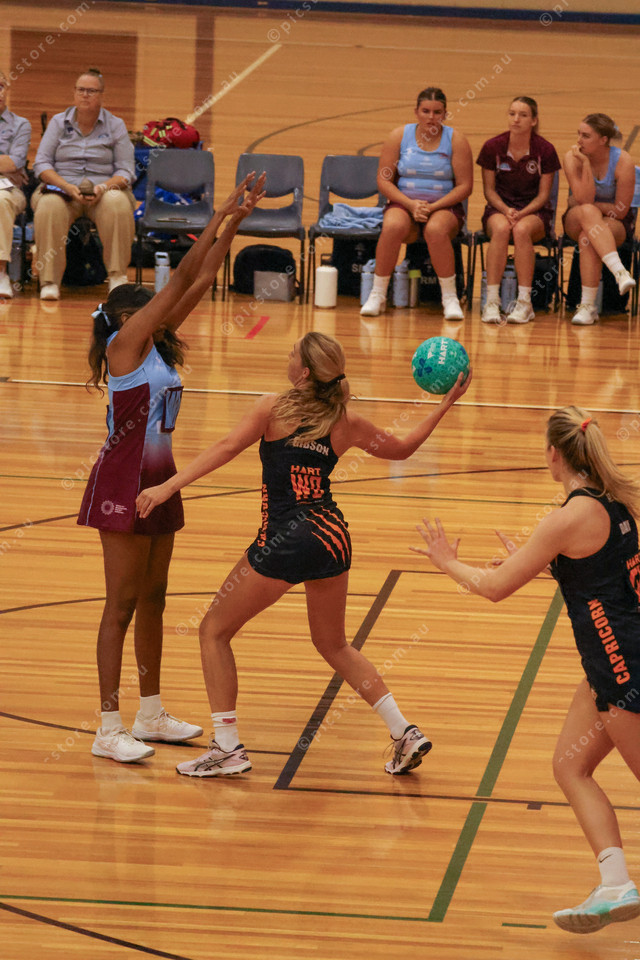 Capricorn’s Bianca Gibson looks to launch a pass up the court.