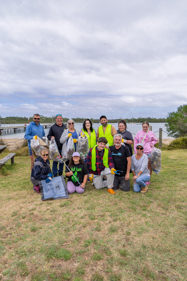 Warneet Association Residents Group. They are holding bags of rubbish that had been collected and were about to have a free BBQ.