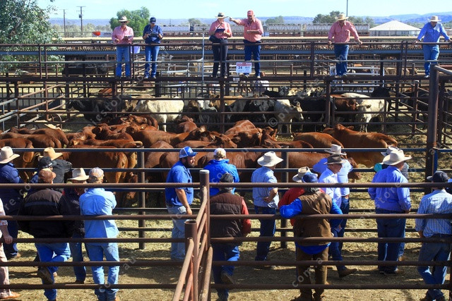 BIDDING: Buyers bid on a lot of Alice Springs cattle. (PIC: PHIL WILLLIAMS 475617_18)